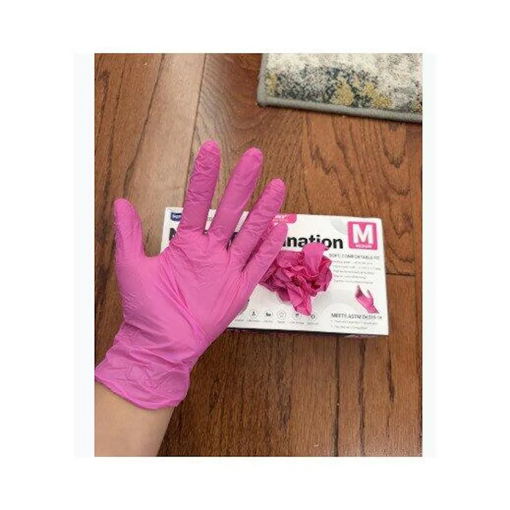 Nitrile Exam Gloves, 4 Mil 100 Pcs Powder-Free Latex-Free Cooking Food-Safe Disposable Medical Gloves, Rose Orchid